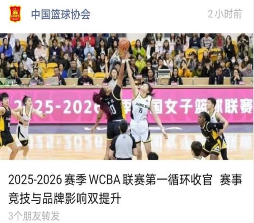 近日,中国篮协发表了一篇标题为《2025-2026赛季WCBA联赛第一循环收官,赛事竞技与品牌影响双提升》的文章,文章中写到,四川女篮发放消费券,带动消费约500万元。