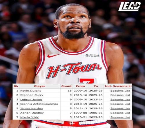 体育播报1月15日宣 数据媒体The Lead统计了球员赛季场均25+且真实命中率60+%的次数。